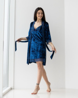 Комплект-трійка з шортами і халатом - мармуровий велюр