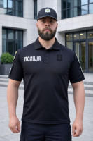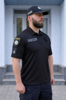 Теніска поло з написом Поліція для Поліції чорна матеріал Coolmax