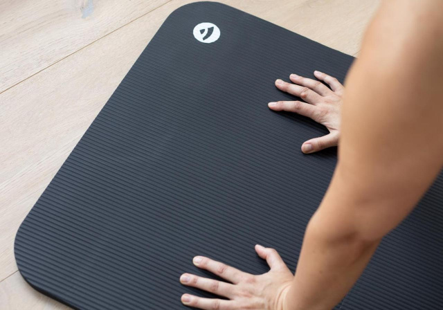 Завдяки рифленій нижній стороні мат стійкий, не ковзає підлогою під час практики. Нековзна поверхня працює на різних типах підлог, тому ви можете використовувати цей килимок у спортзалі, вдома та навіть на природі.