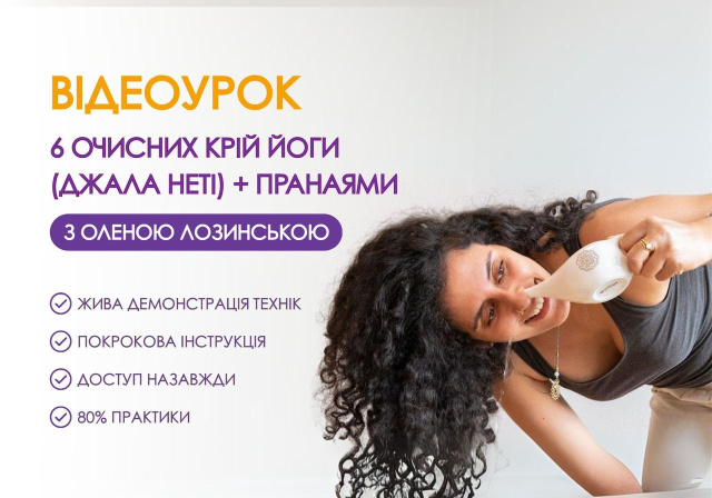 Відеоурок «6 йогічних крій та пранаями» з Оленою Лозинською — навчання Джала Неті та технік очищення