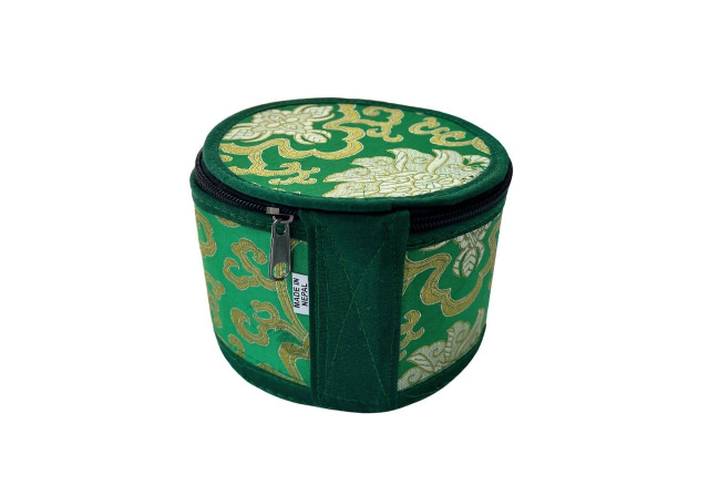 Парчовий бокс діаметром 14 см і заввишки 10 см — це ідеальне рішення для безпечного зберігання й транспортування чаш, що поповнюють. Виготовлений зі щільної тканини з традиційними візерунками в стилі Тибету, він не тільки захищає чашу від пошкоджень, але й додає сакральної атмосфери до вашої практики.