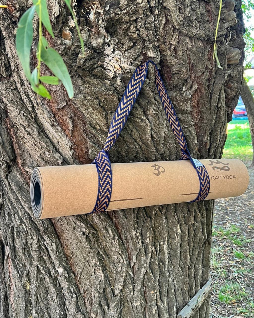 Універсальне стягування-слінг RAO для йога-килимків. Довжина 150 см, ширина 4 см. Виготовлена з міцної поліестерової ремінної стрічки з етнічним принтом. Легка, зручна та надійна у використанні. Може застосовуватися як ремінь для йоги — для розтягування та підтримки в асанах.