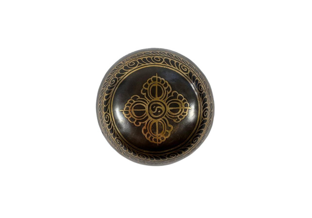 Тибетська чаша з гравіюванням Дхармапала + Мантра + Подвійний Дордже 13.5 см, Одеська область