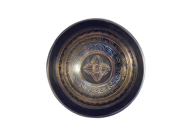 Тибетська чаша з гравіюванням Подвійний Дордже + Мантра + Золоті рибки 18 см, Одеська область