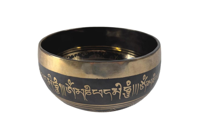 Чаша прикрашена сакральною символікою буддійської традиції. Нескінченний вузол (Endless Knot) — один із Восьми Сприятливих Символів буддизму, що символізує нескінченність духовного шляху, взаємозв’язок усіх явищ, єдність мудрості та співчуття. На поверхні та зовнішньому дні чаші вигравійована мантра «Ом Мані Падме Хум», яка посилює очищення свідомості, гармонізацію внутрішнього стану та поглиблення практики.