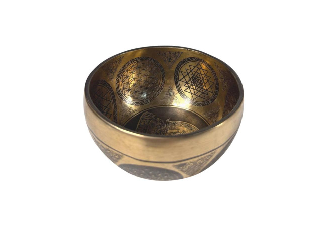 Співаюча чаша ручної роботи з арт-гравіюванням Авалокітешвара + Шрі Янтра + Квітка життя 13 см, Одеська область