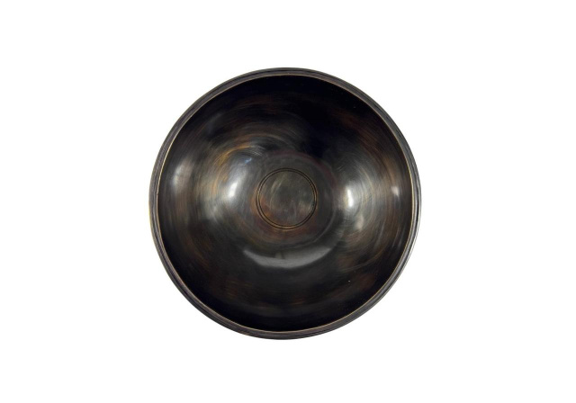 Завдяки масивним стінкам і широкому ободу чаша має глибоке, щільне та стійке звучання. Тон — низький і насичений, з м’якою обволікальною вібрацією, що довго утримується в просторі. Звук сприймається не лише слухом, а й тілом, створюючи виразний ефект розслаблення та заземлення.