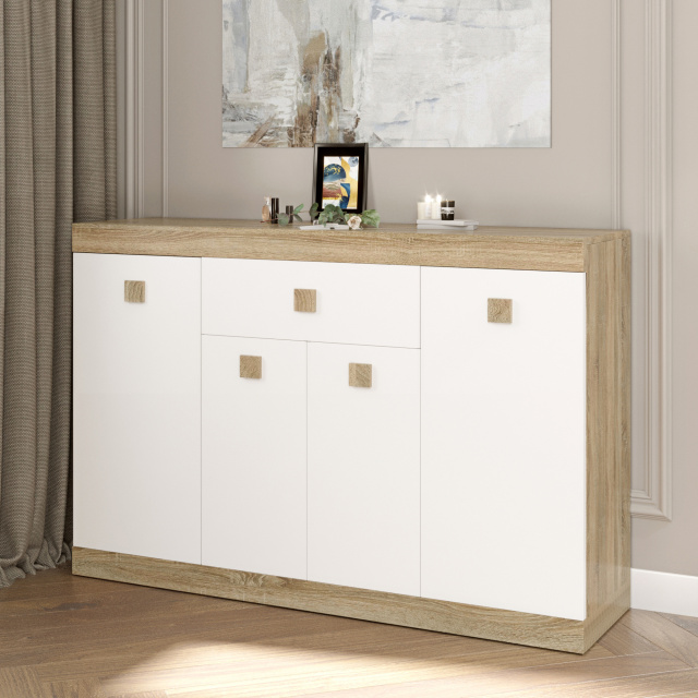 Большой комод Эверест с дверями и ящиком Соната-7 140х38х94 дуб сонома + белый (DTM-2016), Одесская область