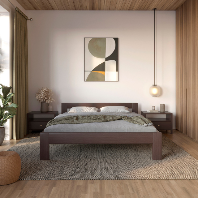 Двуспальная деревянная кровать Mebigrand Дели Венге 140х200 см (MBG-3814)