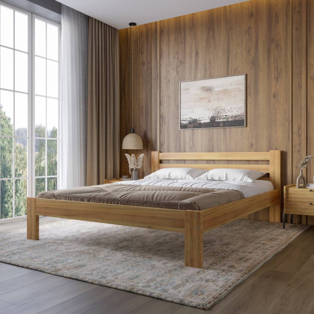 Двуспальная кровать Mebigrand Бавария изготовлена из натурального дерева в теплых тонах светлого ореха. Она сочетает в себе прочность и стильный дизайн, создавая уютную атмосферу в вашей спальне.