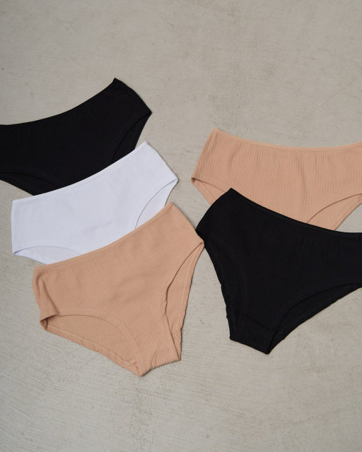 В пакованні 5 трусиків одного розміру, але різних кольорів (див. фото).