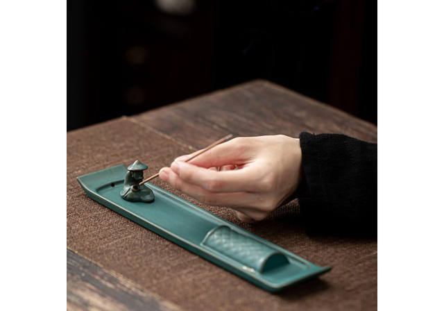Встановіть аромапаличку в отвір тримача. Запалюйте кінчик і погасіть полум'я. Розмістіть підставку на рівній поверхні. Попіл акуратно збиратисяме в основі.